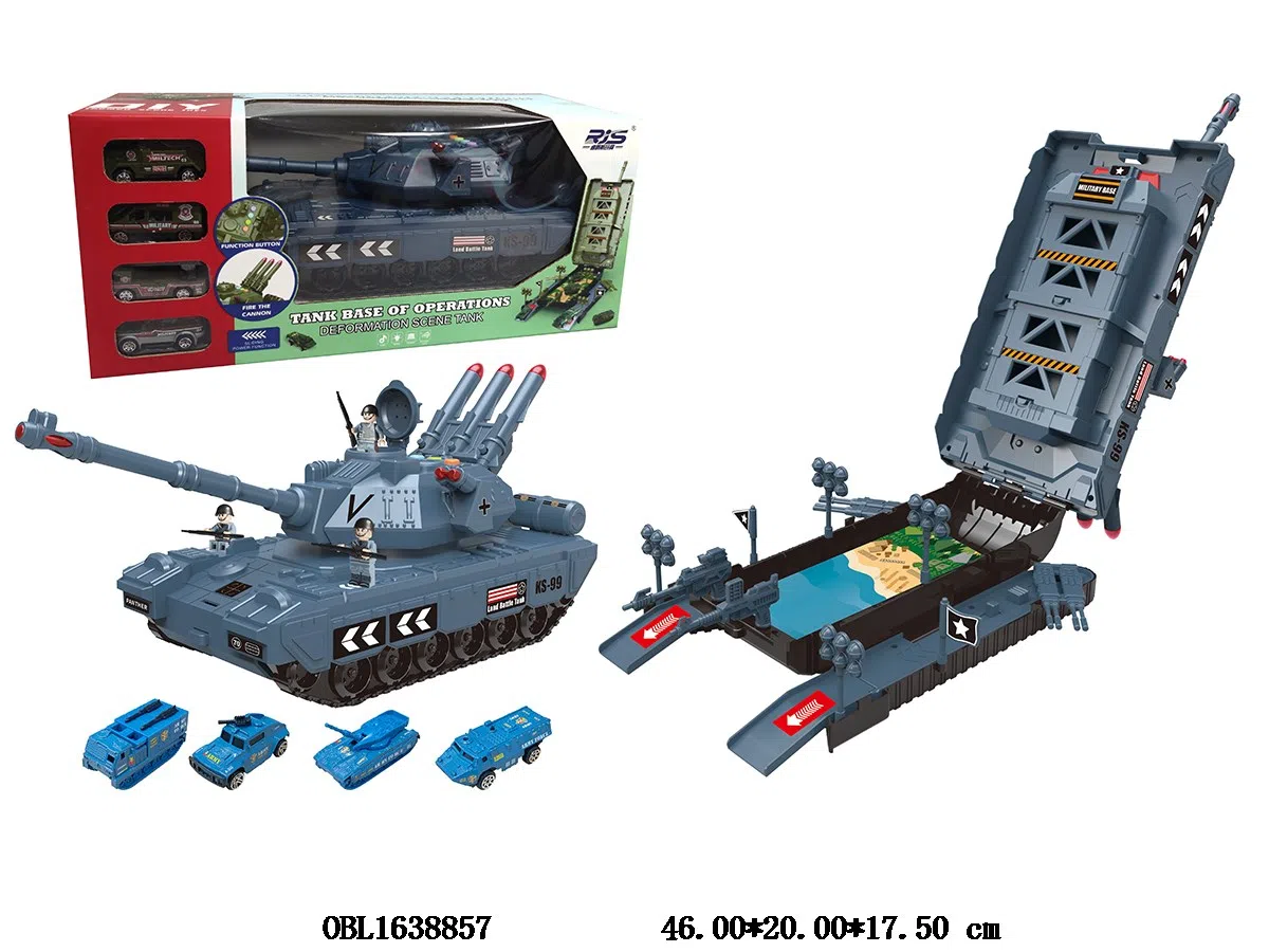 Home > Free Wheel Tank > Sliding storage catapult tank set with light and sound, equipped with 4 sliding cars, 3 * AA, without battery pack