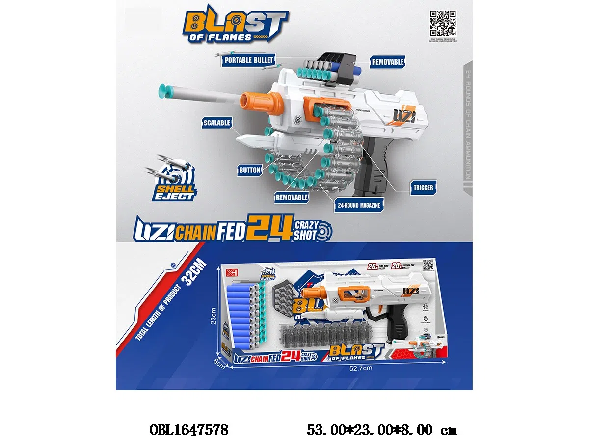 Home > Dart Gun > 24 round cartridge case chain Uzi EVA soft bullet gun set