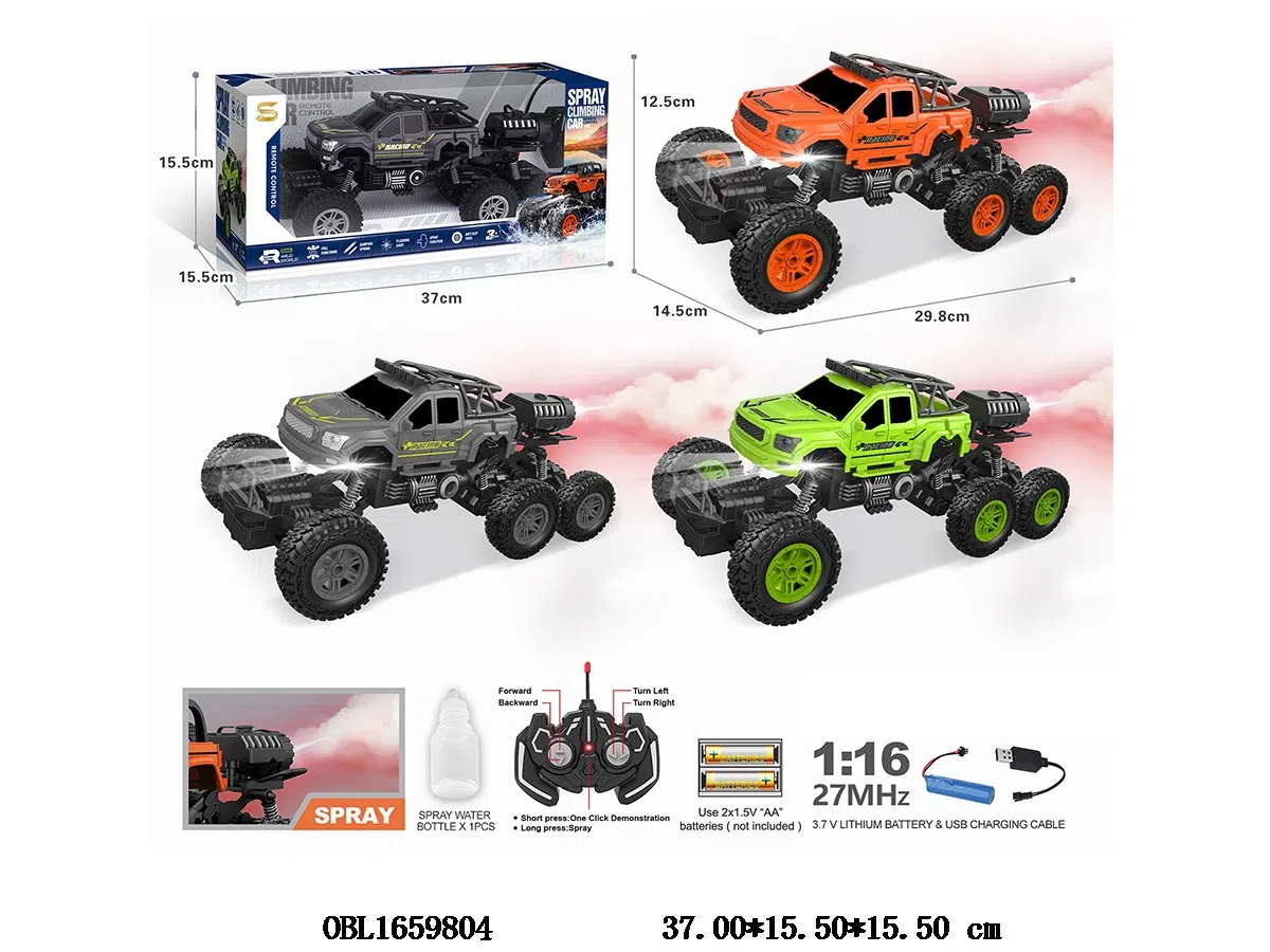 1: 16 six way remote control car with light spray with USB cable body 3.7V lithium battery pack electric remote control 2 * AA no pack 27 frequency three color mixed