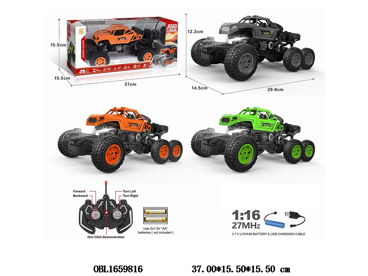 1: 16 Five way skeleton remote control car with lighting and USB cable body 3.7V lithium battery pack electric remote control 2 * AA no pack electric 27 frequency 3-color mixed installation