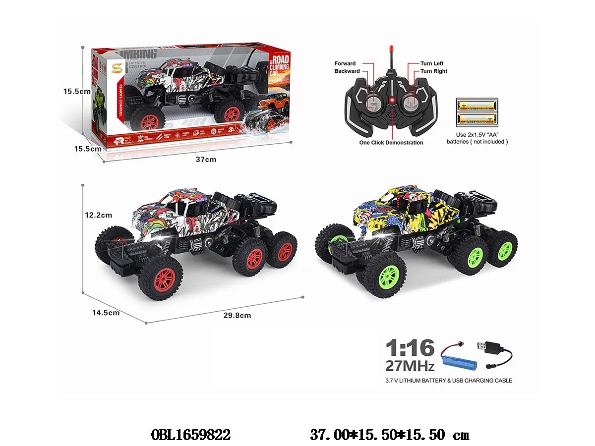 Home > R/C Car > 1: 16 5-way skeleton remote control car with lighting and USB cable body 3.7V lithium battery pack electric remote control 2 * AA without battery pack 27 frequency 2-color mixed installation