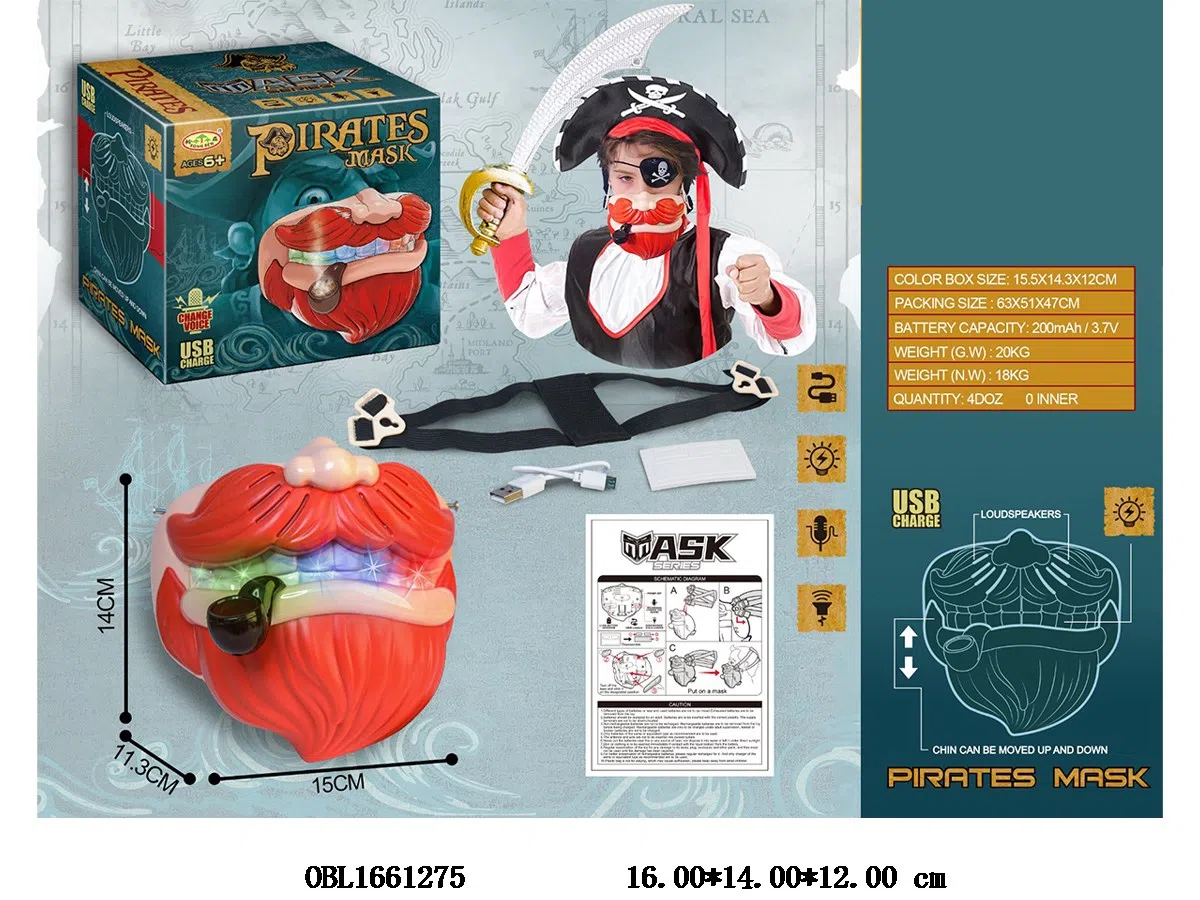 Pirate Mask with Light and Sound Modification, USB Cable Mouth Interaction, 3.7V Polymer Lithium Battery Pack