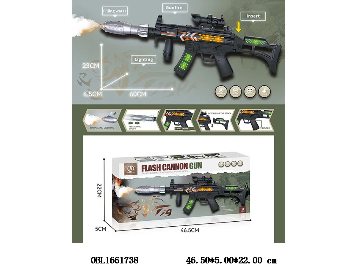 Home > B/O Gun > Electric gun with light, sound, vibration, spray 3 * AA, no electricity