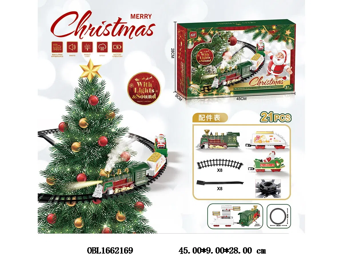 Home > B/O Railcar > Electric suspension Christmas tree track train set with lights, sound, water, smoke, 4 * AA, no battery pack