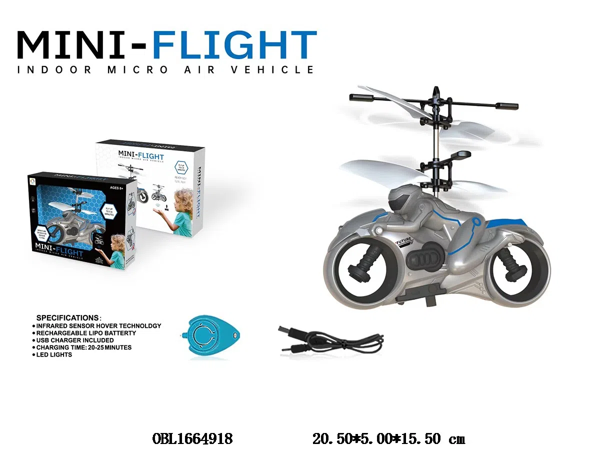 Infrared induction motorcycle frisbee with USB cable body 3.7V battery pack, water droplet remote control 1 piece 3V1220 battery pack
