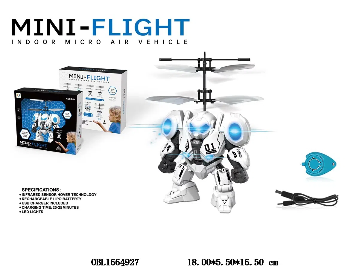 Infrared induction robot UFO with USB cable body 3.7V battery pack, water droplet remote control 1 3V1220 battery pack