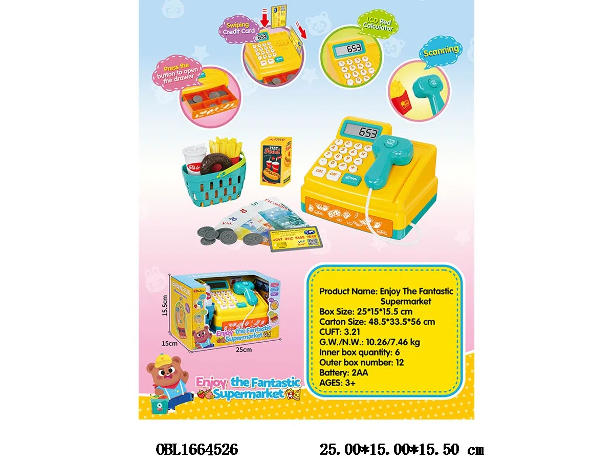 Cashier set with sound calculation, 2 * AA, no battery included