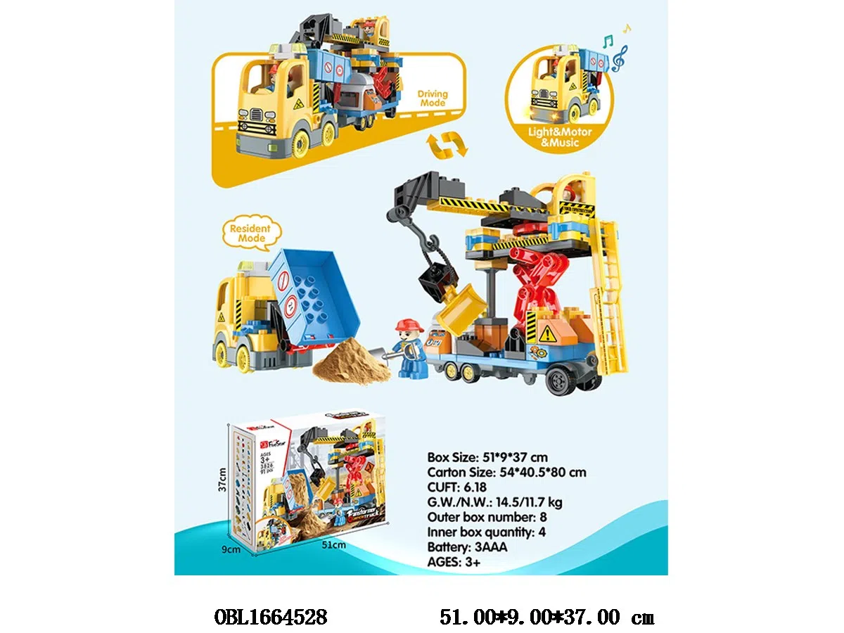 Puzzle building block electric cool change engineering vehicle with music 91PCS 3 * AAA, not including electricity