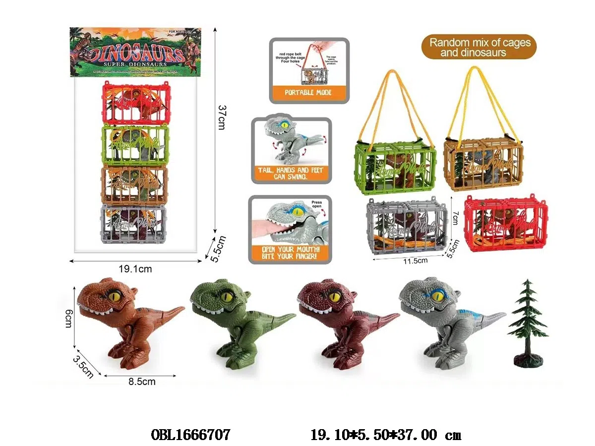 4 sets of biting hand dinosaurs with carrying cages/tree 4-color mixed tails/swinging hands and feet