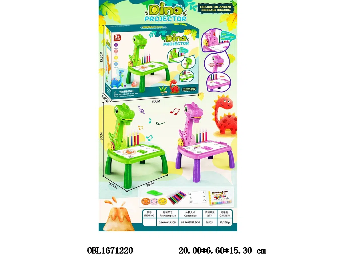 Home > Writing Board > Dinosaur drawing board projection table set with music and lighting, 3 * AA, non electric, 2-color mixed set
