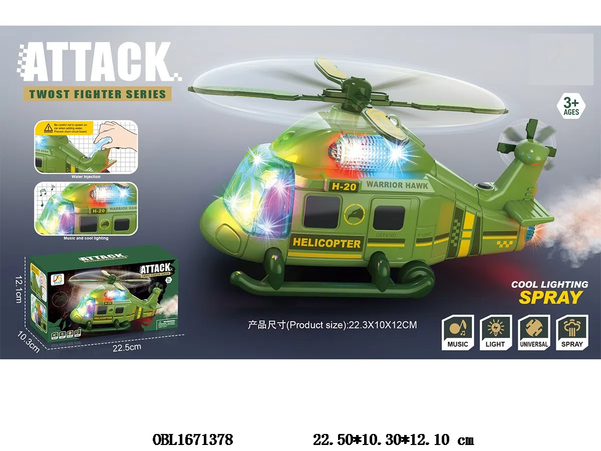 Electric universal helicopter with light, music, spray 3 * AA, no power package