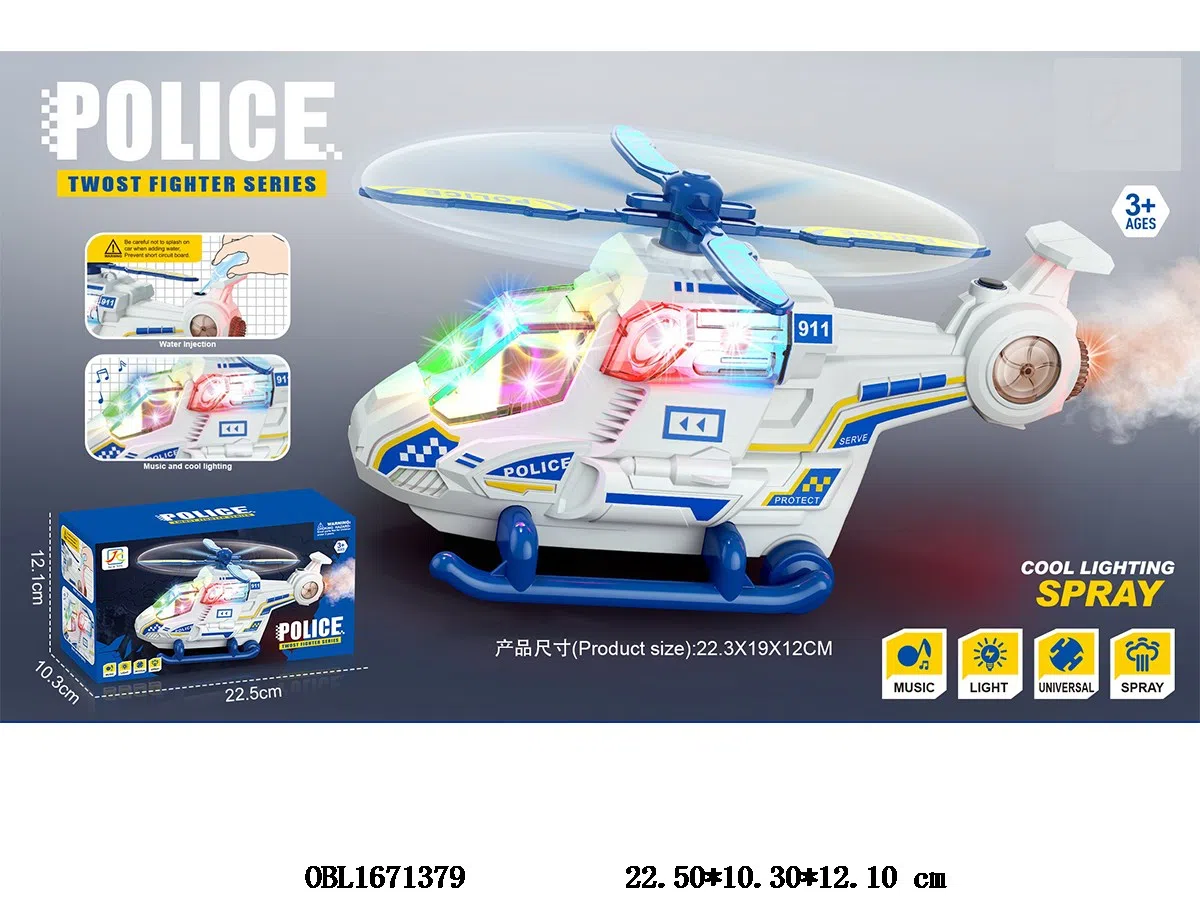Electric universal helicopter with light, music, spray 3 * AA, no power package