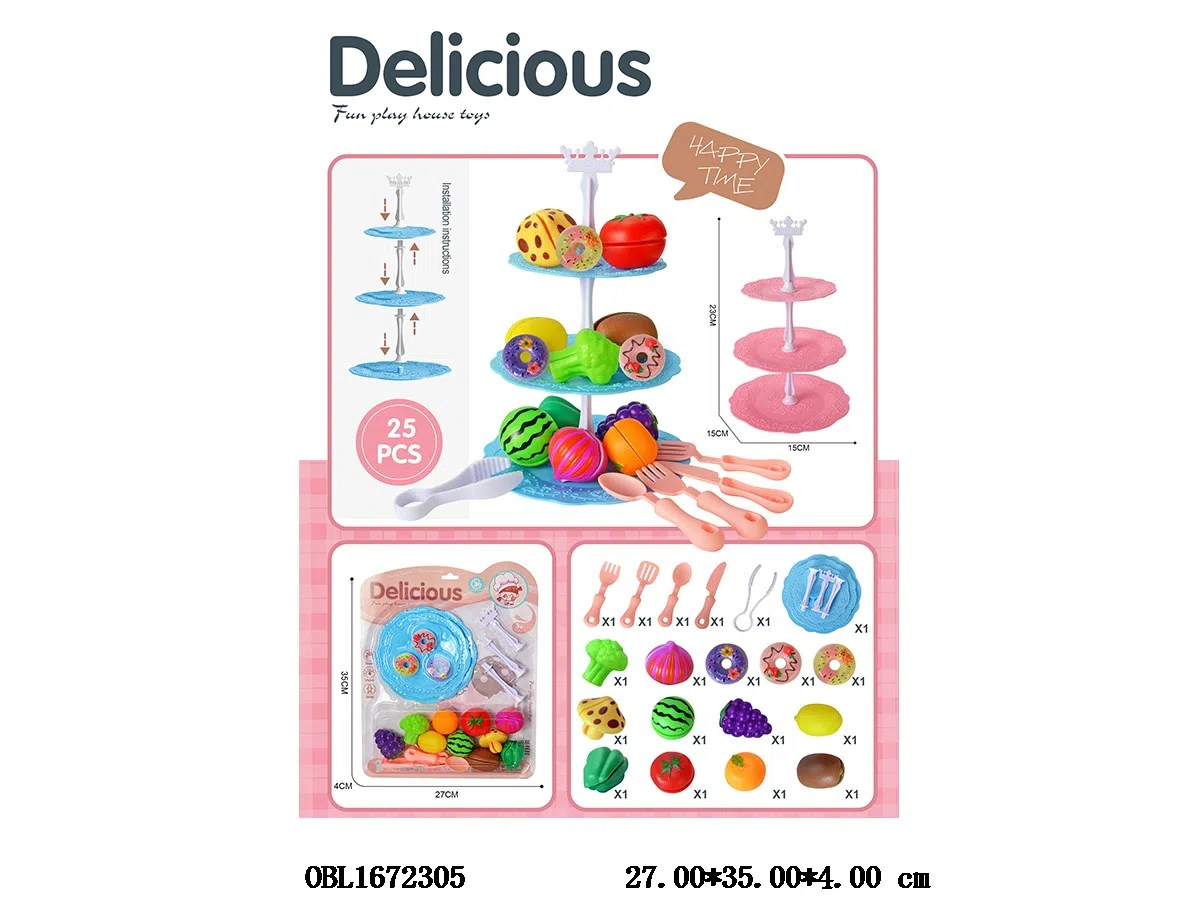 Home > Fruits and Vegetables Set > Fruit and vegetable food set with three-layer cake plate and mixed blue powder