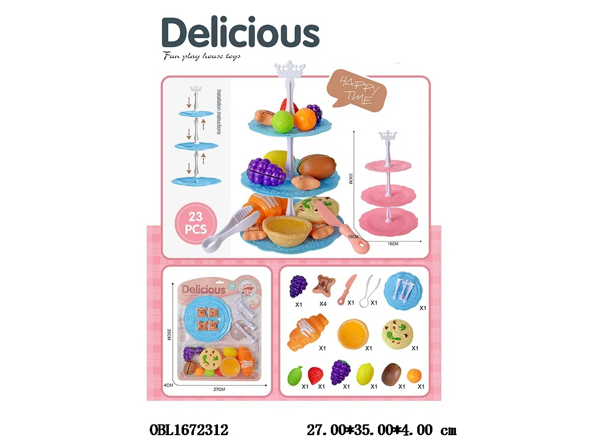 Home > Fruits and Vegetables Set > Fruit and vegetable food set with three-layer cake plate and mixed blue powder