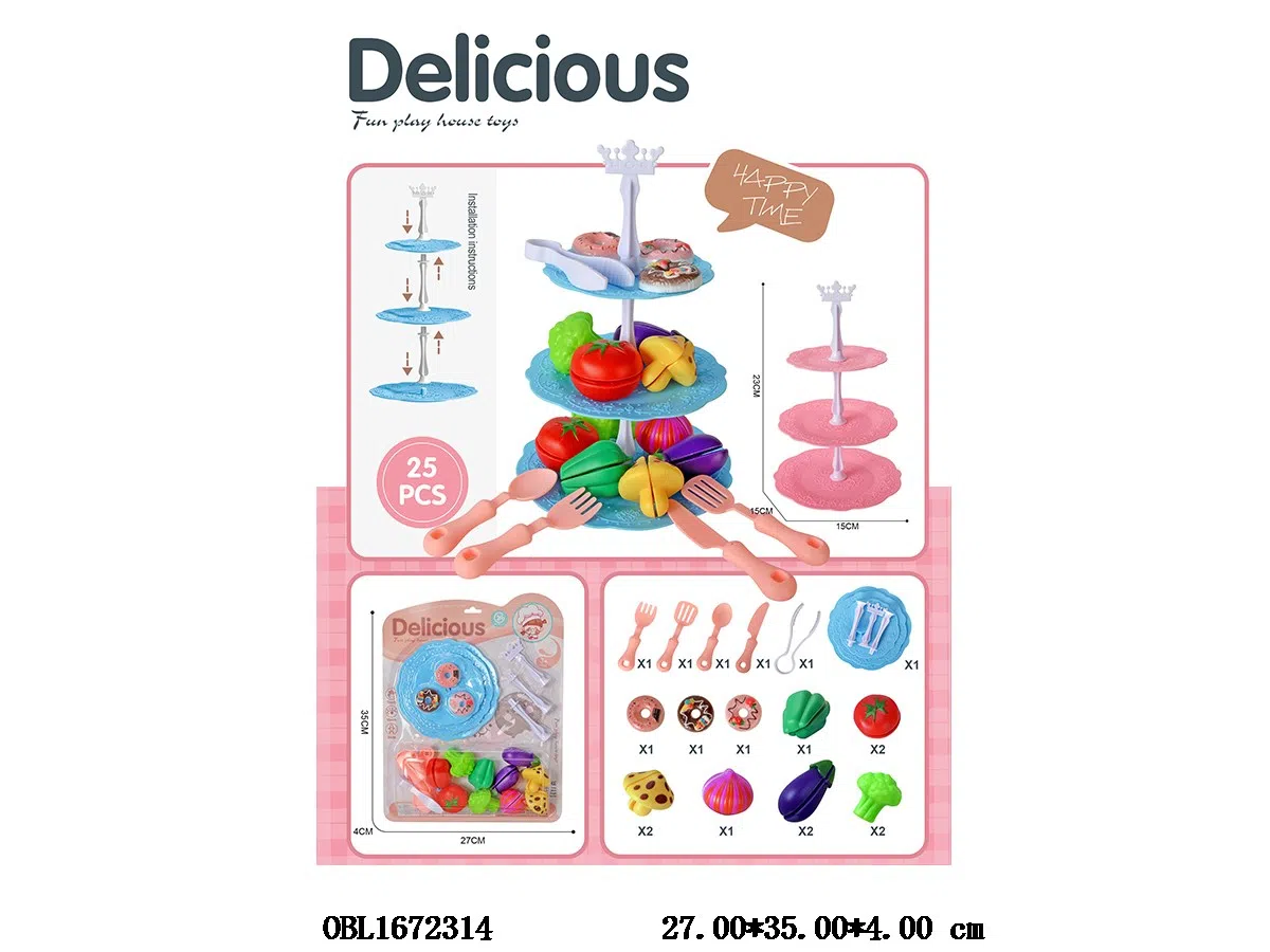 Home > Fruits and Vegetables Set > Fruit and vegetable food set with three-layer cake plate and mixed blue powder