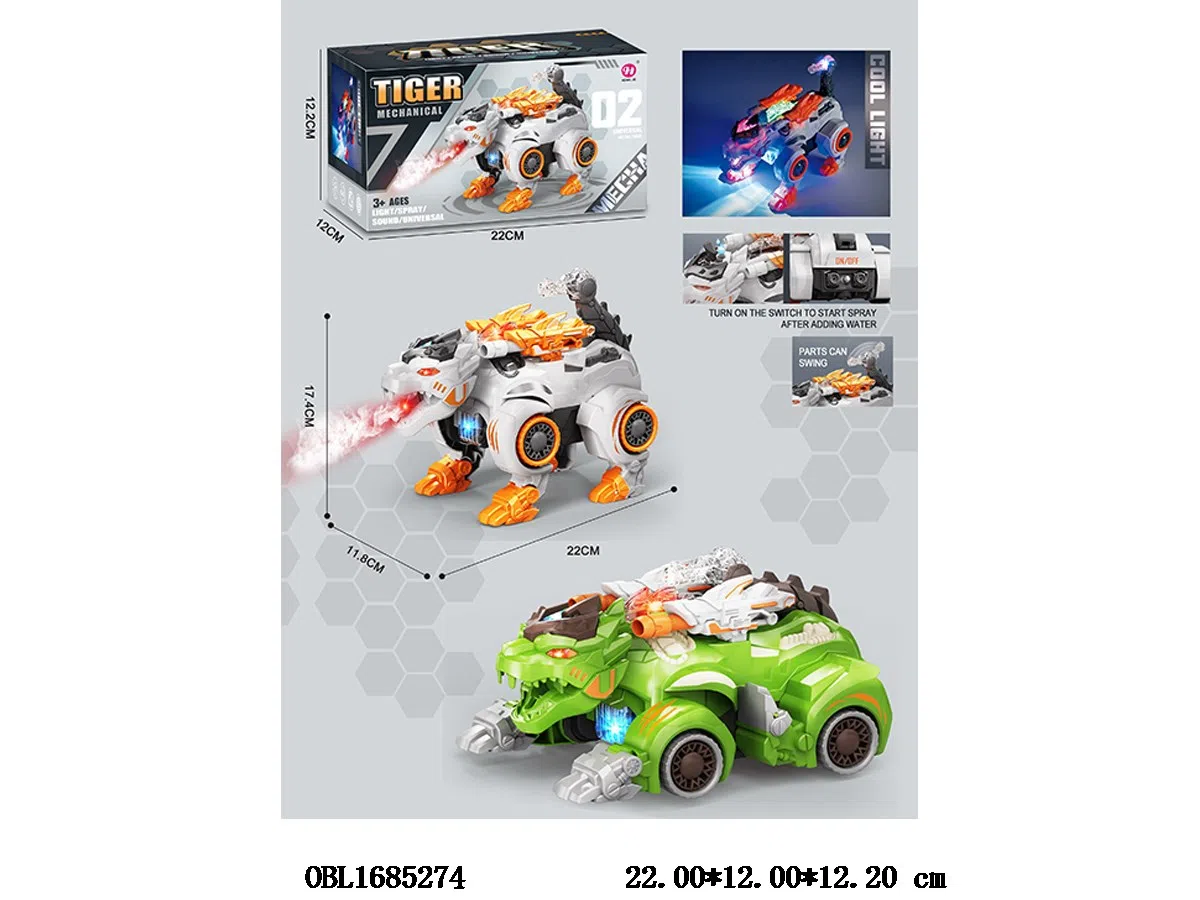 Electric deformation tiger with light, music, spray, 3 * AA, 2 mixed models without electricity