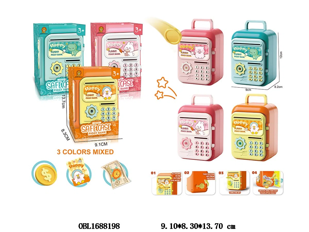 Card insertion cartoon piggy bank with 4 mixed packaging options