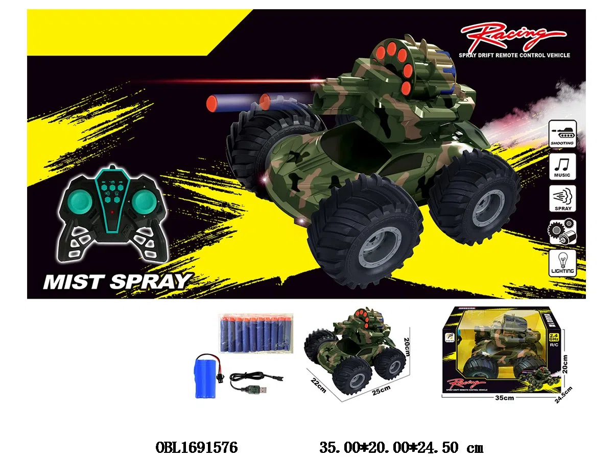 Home > R/C Car > Remote control car with light, music, spray, drift, launch, soft elastic, USB cable, body, 7.4V lithium battery pack, electric remote control, 2 * AA, no power pack, 2.4G frequency, 2-color mixed installation