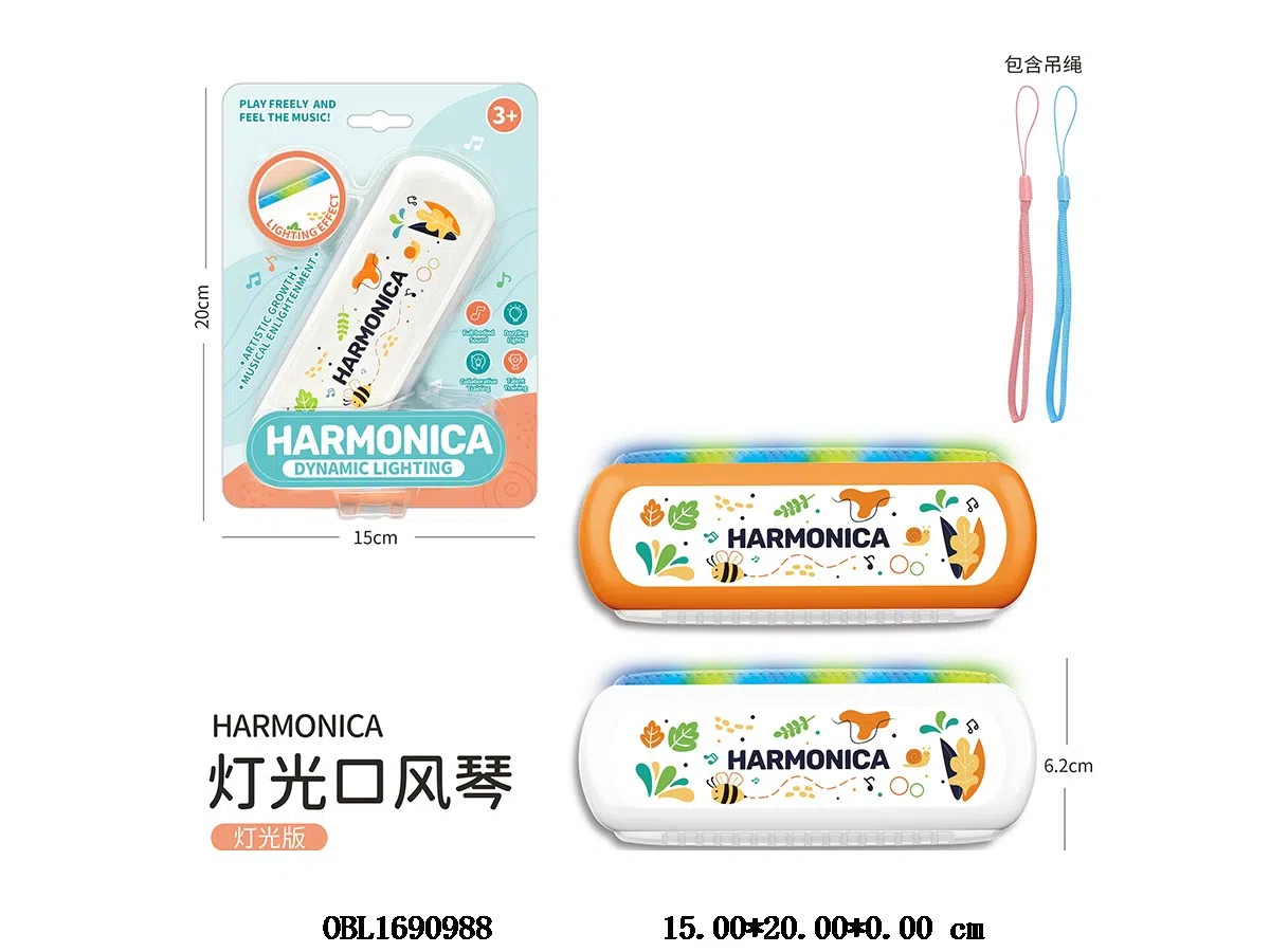 Home > Harmonica > Oral organ with light 3 * AG13, including electricity, 2 colors mixed, and hanging rope