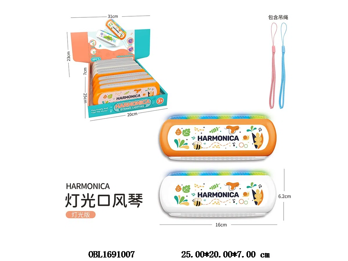 Home > Harmonica > Oral organ with lighting 3 * AG13, including electricity, 2 colors mixed, 8 pieces, 1 display box