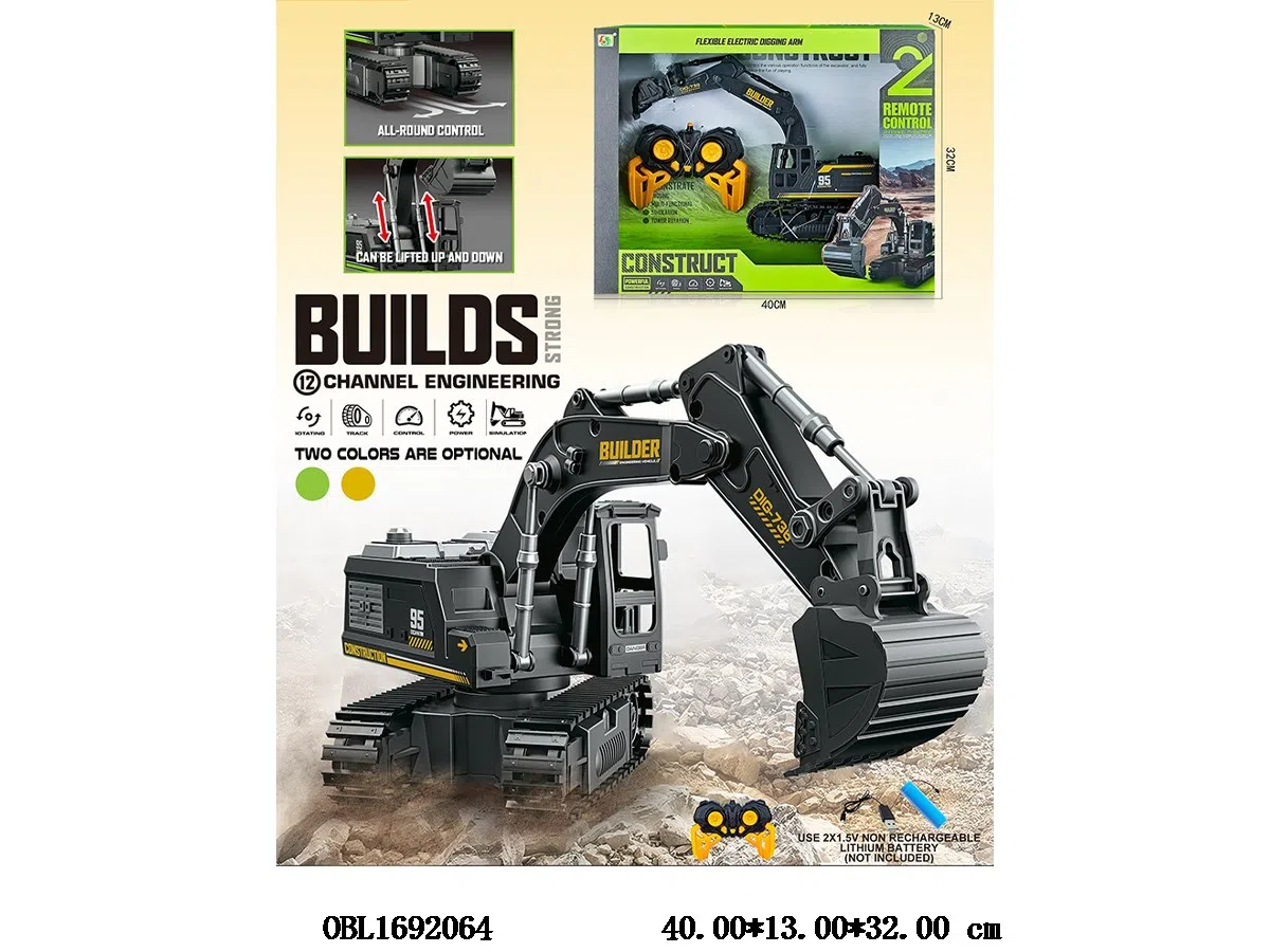 Home > R/C Car > 1: 16 Six way Remote Control Engineering Vehicle with USB Cable Body 3.7V Lithium Battery Powered Remote Control 2 * AA Unplugged 2.4G Frequency Yellow/Green