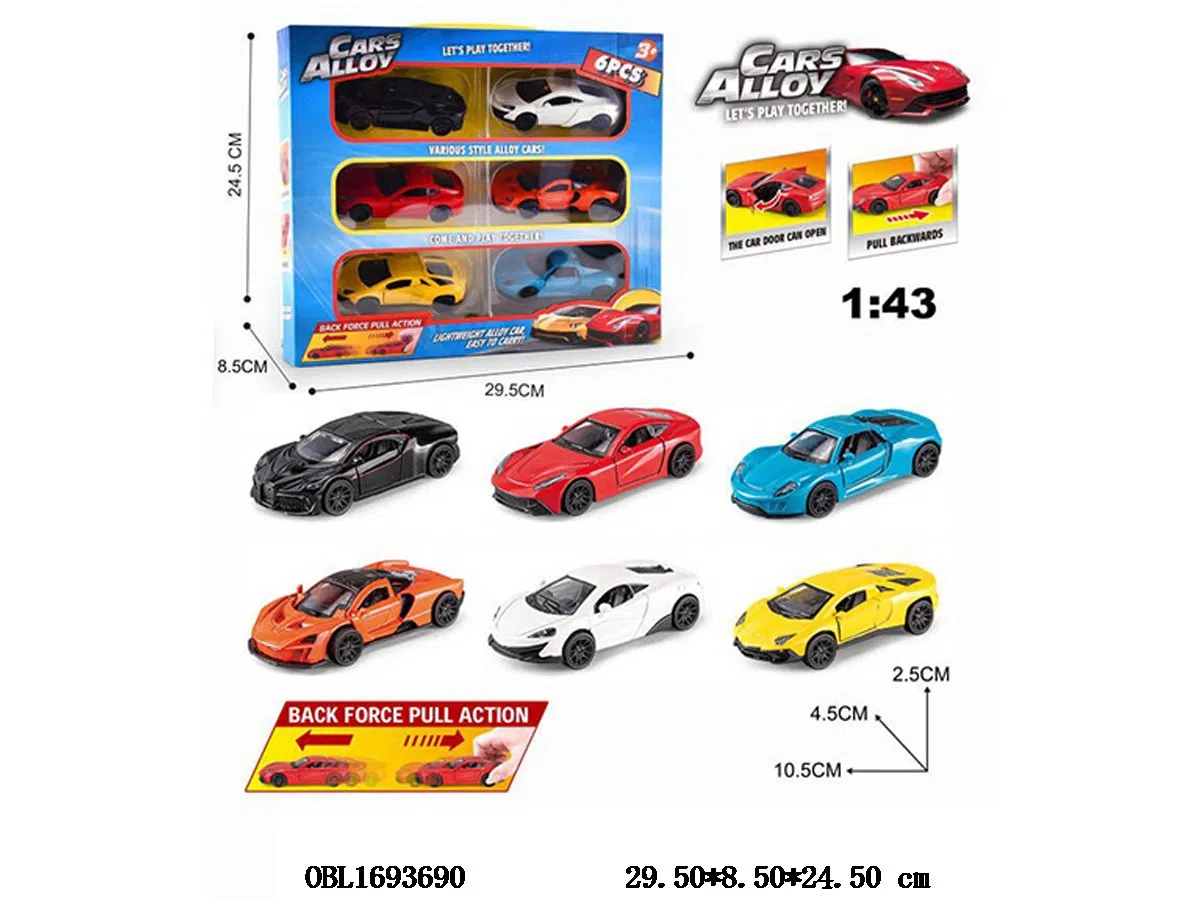 Home > Die-Cast Car > 6-pack 1:43 rebound alloy car can open the door