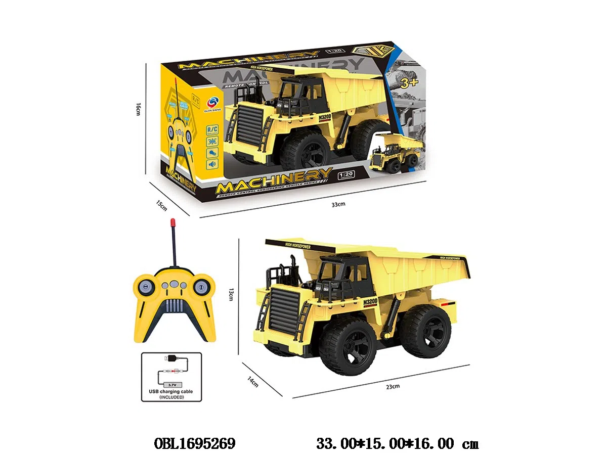 1: 20 six way remote control soil unloader with light and sound, equipped with USB cable, body 3.7V lithium battery included remote control, 2 * AA non included, 27 frequency