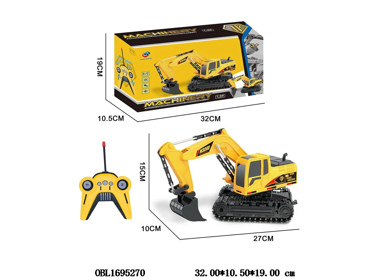 Home > R/C Car > 1: 20 Six way remote control alloy excavator with lighting and sound, body 4 * AA without power, remote control 2 * AA without power, 27 frequency