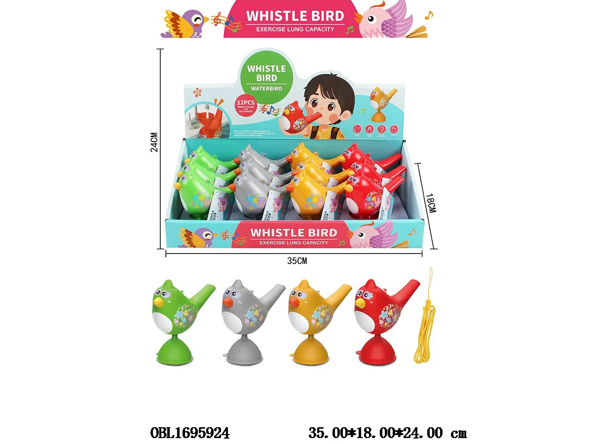 Water bird whistle with hanging rope, mixed with 4 colors, 12 pieces, 1 display box