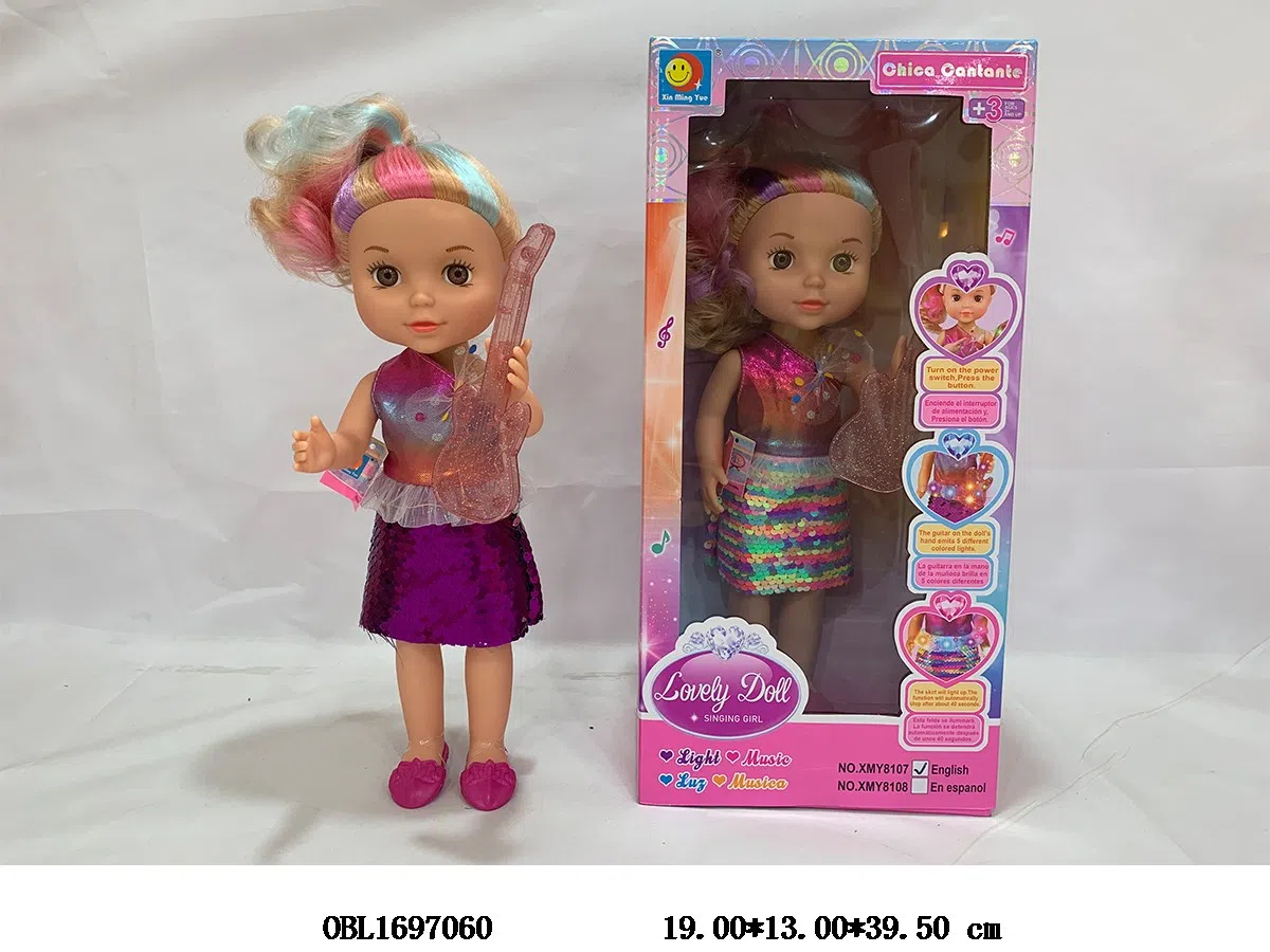 14 inch solid Barbie doll with lighting, music, English IC 3 * AA, not including electricity, 3 mixed outfits