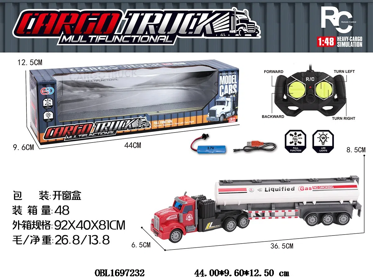 1: 48 four-way remote control trailer with lights and USB cable, body 3.7V battery with power included remote control 2 * AA without power included, 27 frequency