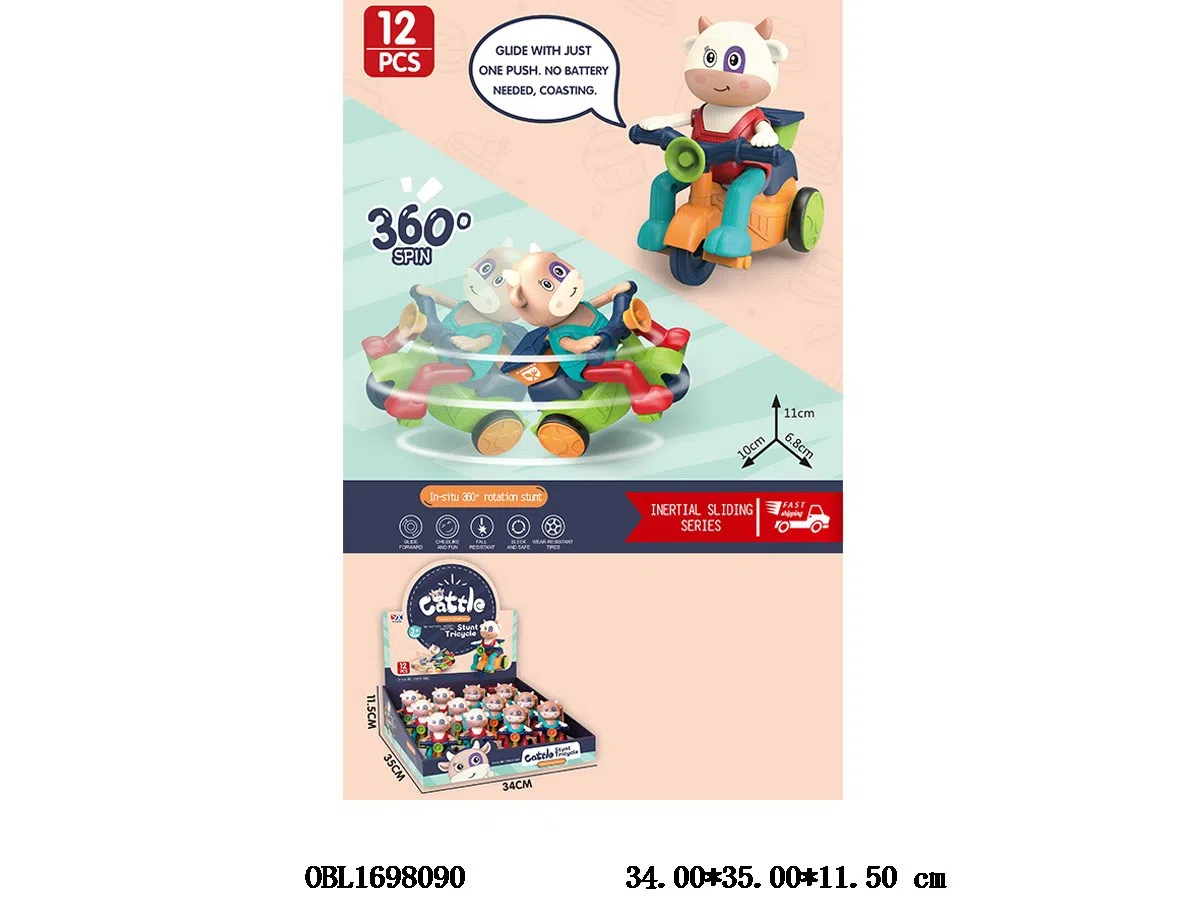 12 inertia stunt tricycles in one display box, mixed with 2 colors