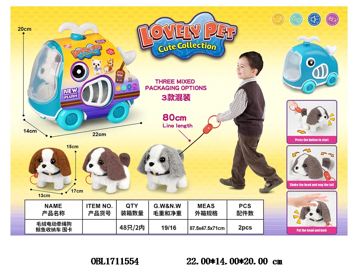 Home > B/O Animal > Plush electric dog with sound and whale storage cage car with drawstring 2 * AA, not including electric enclosure card, 3 colors mixed