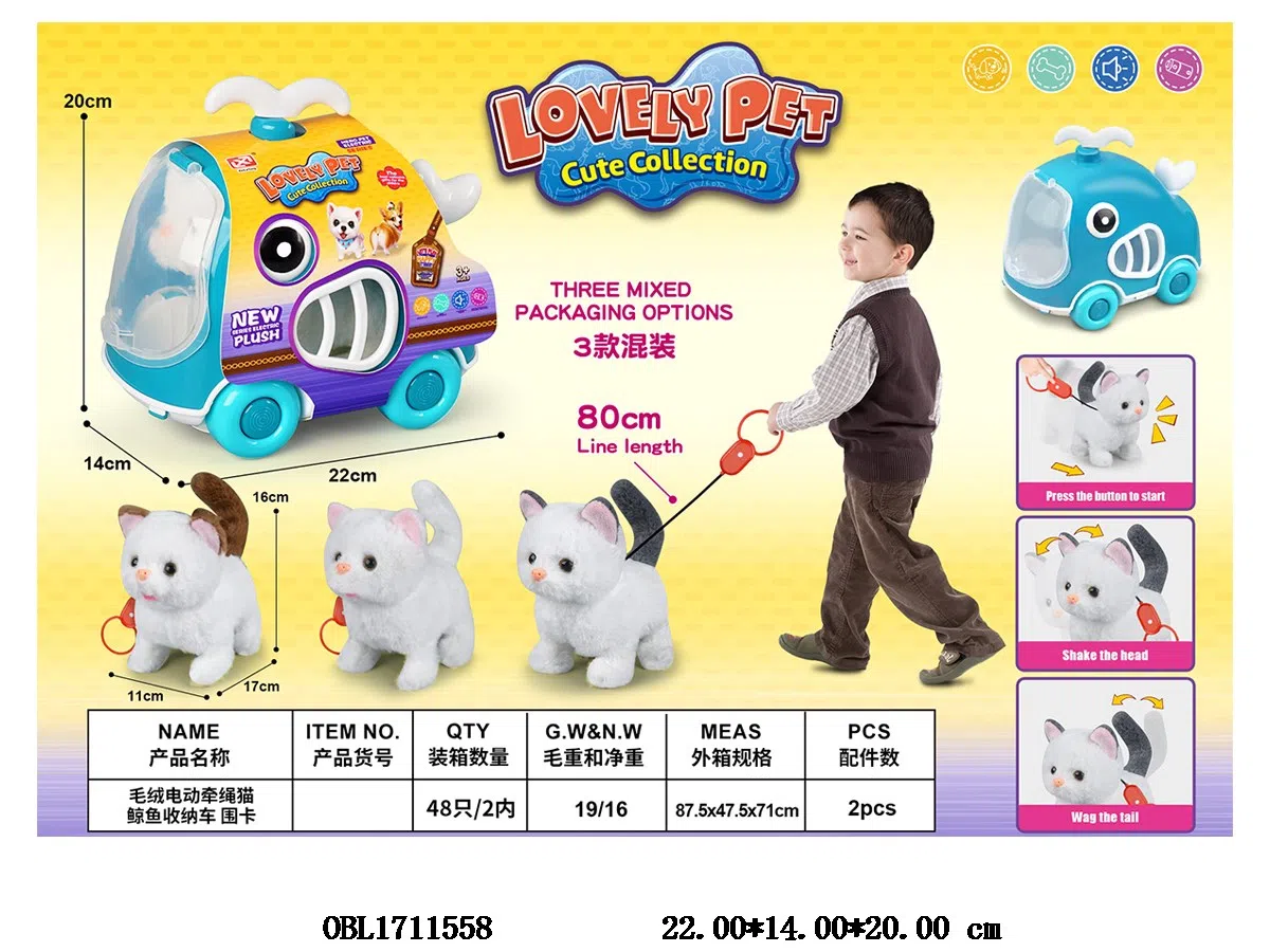 Home > B/O Animal > Plush electric cat with sound and whale storage cage car with drawstring 2 * AA, not including electric enclosure card, 3 colors mixed
