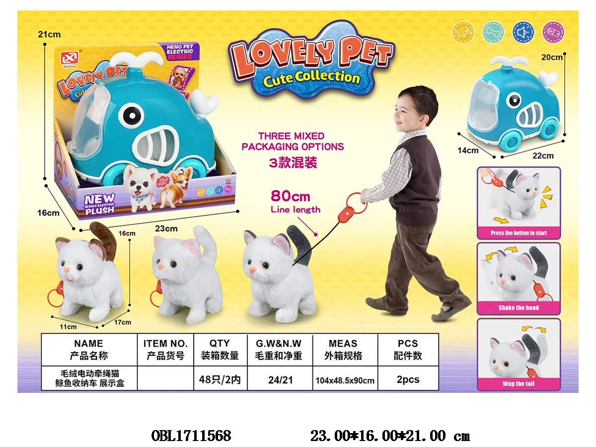 Home > B/O Animal > Plush electric cat with sound and whale storage cage car with drawstring 2 * AA, no electricity included, 3 colors mixed