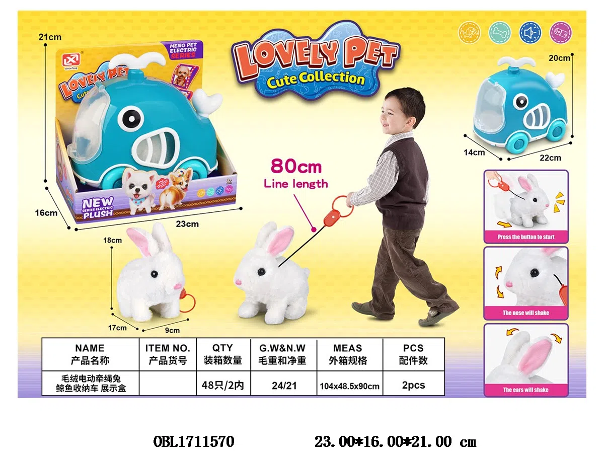 Home > B/O Animal > Plush electric rabbit with sound and whale storage cage car with drawstring 2 * AA, no electricity included