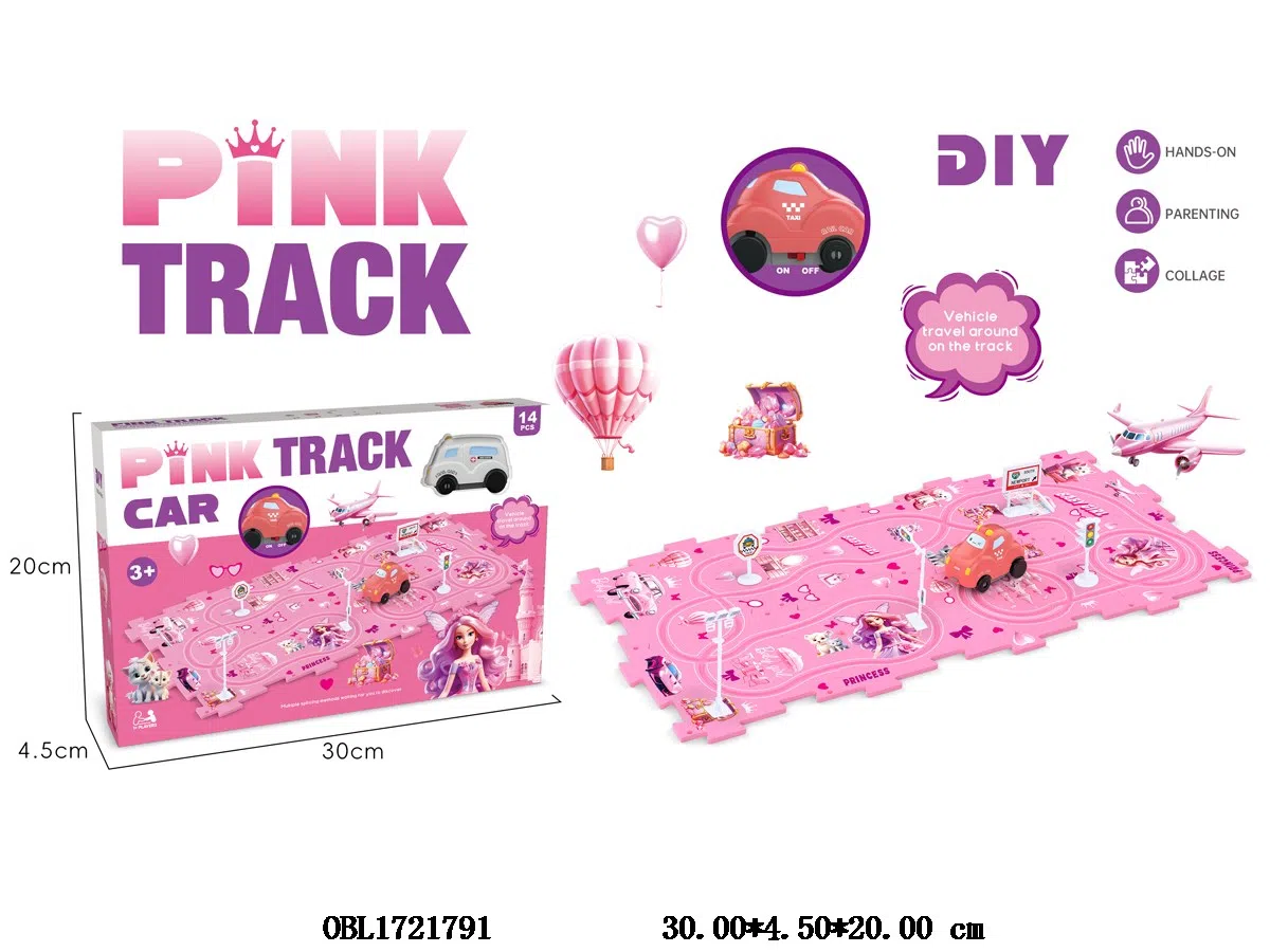 Electric puzzle track car set DIY Barbie theme, no electricity included