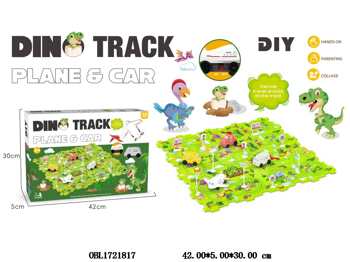 Electric puzzle track car set DIY dinosaur theme, no electricity included