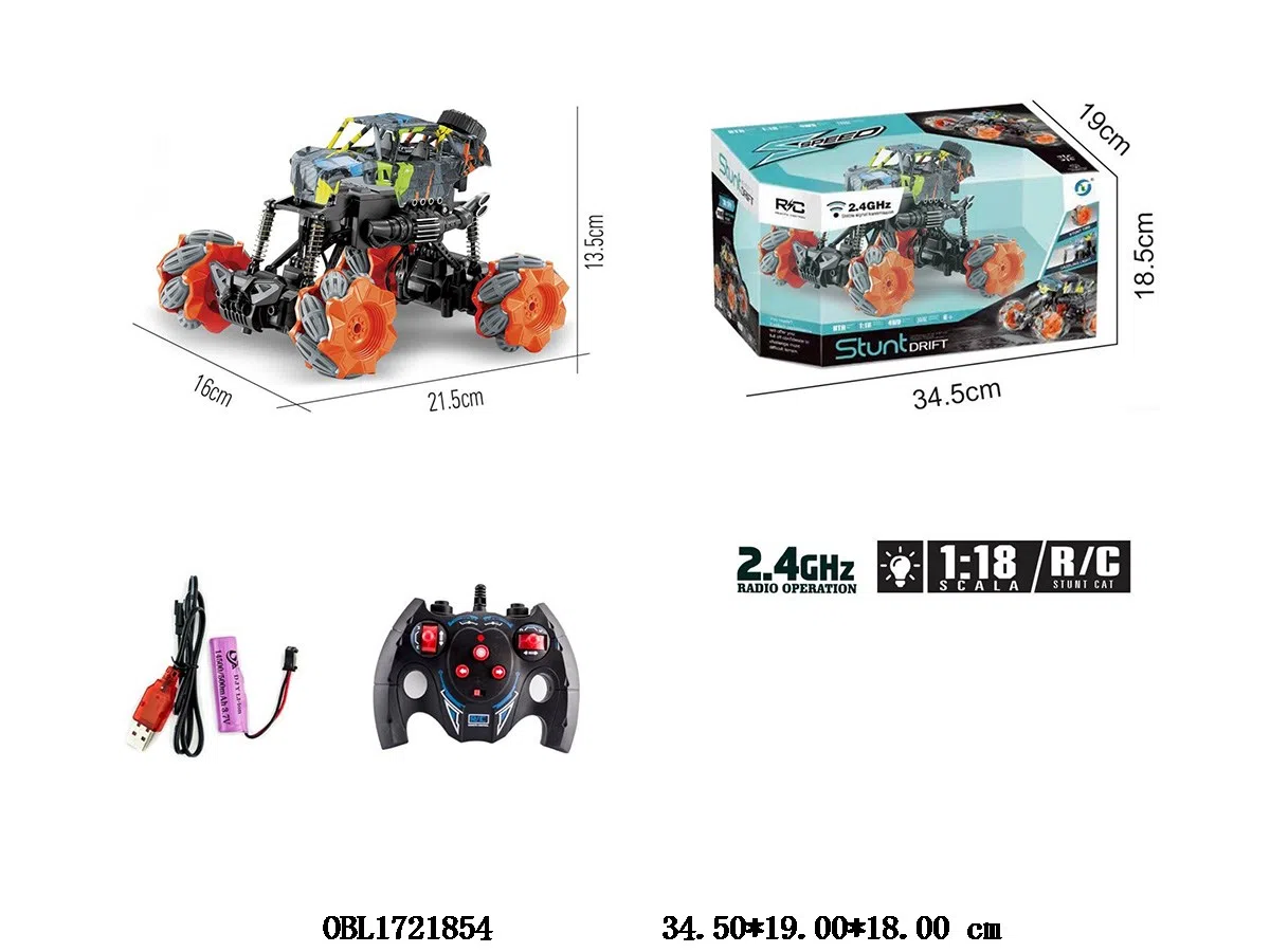 Seven way remote control side moving stunt car with lights and USB cable, body 3.7V lithium battery included remote control 2 * AA without power, 2.4G frequency