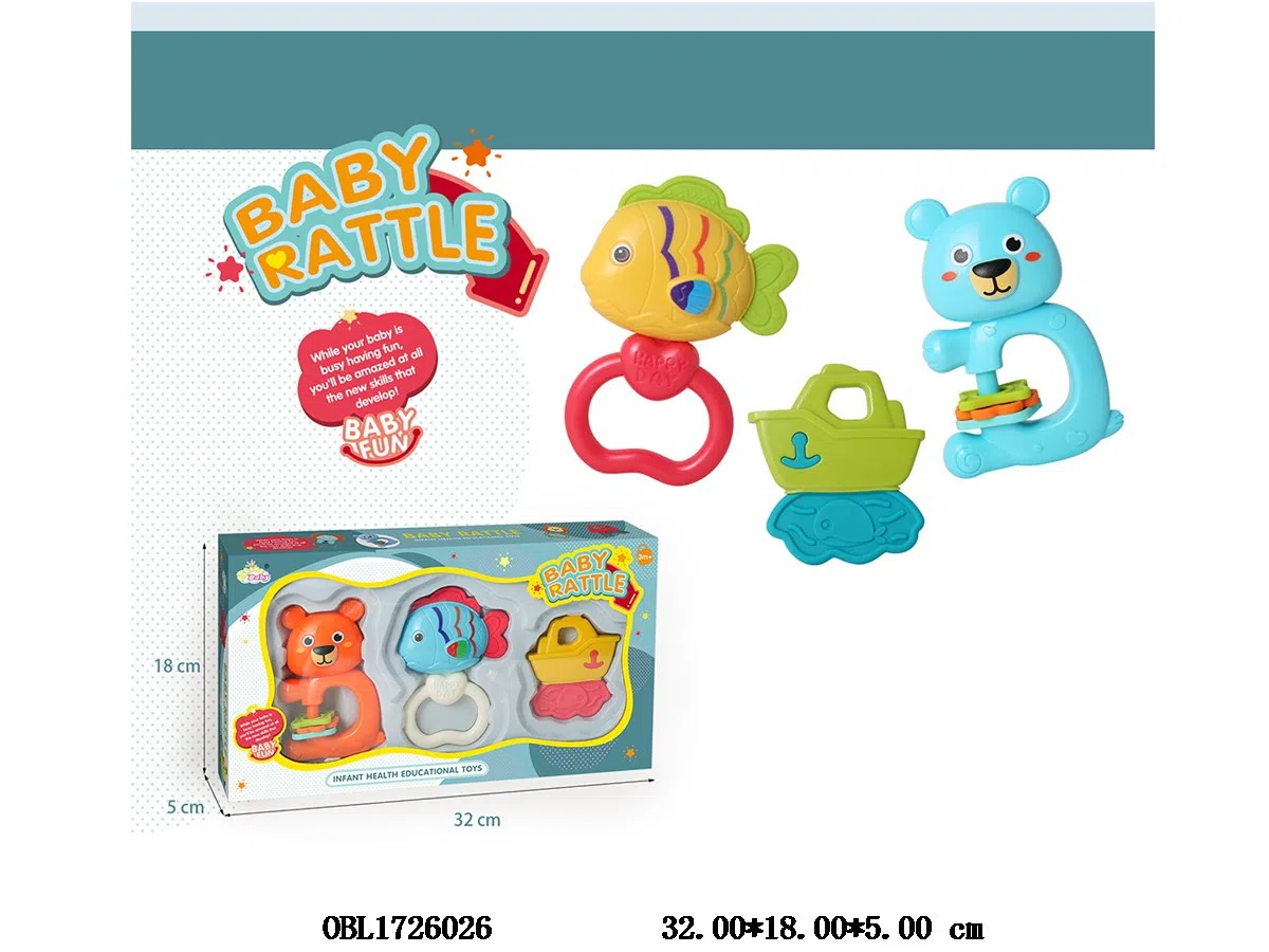 3-piece baby bell/teething set, mixed in 2 colors