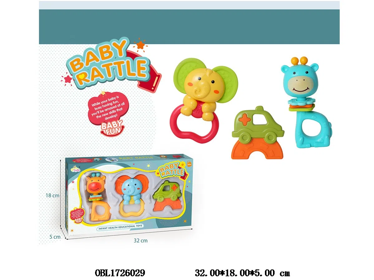 3-piece baby bell/teething set, mixed in 2 colors