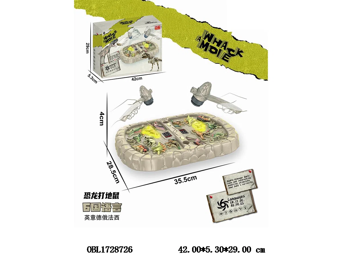 Dinosaur groundhog game console with lights, sound, singles mode/dinosaur mode 3 * AA, no power included, 6 languages