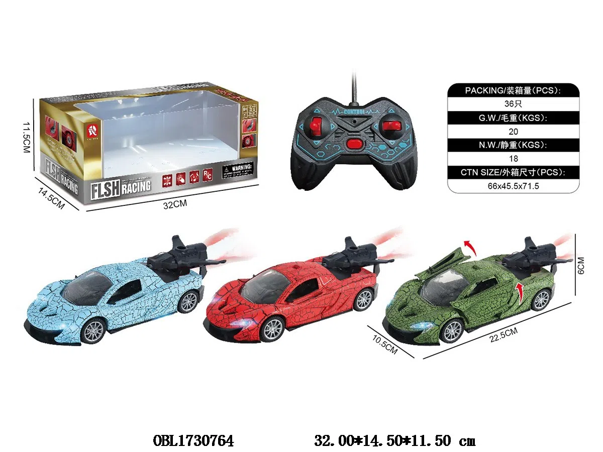 Home > R/C Car > Remote control crack car with light spray one button door opening body 3 * AA without electric remote controller 2 * AA without electric remote controller 27 frequency 3 color mixed loading
