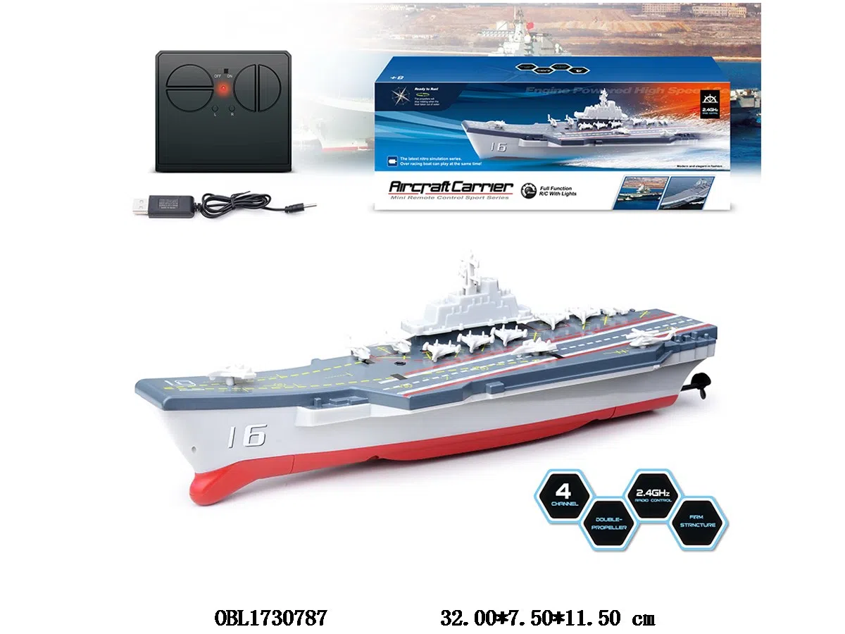 Home > R/C Boat > Remote control aircraft carrier with USB cable ship body 3.7V lithium battery included remote control 2 * AAA non included 2.4G frequency