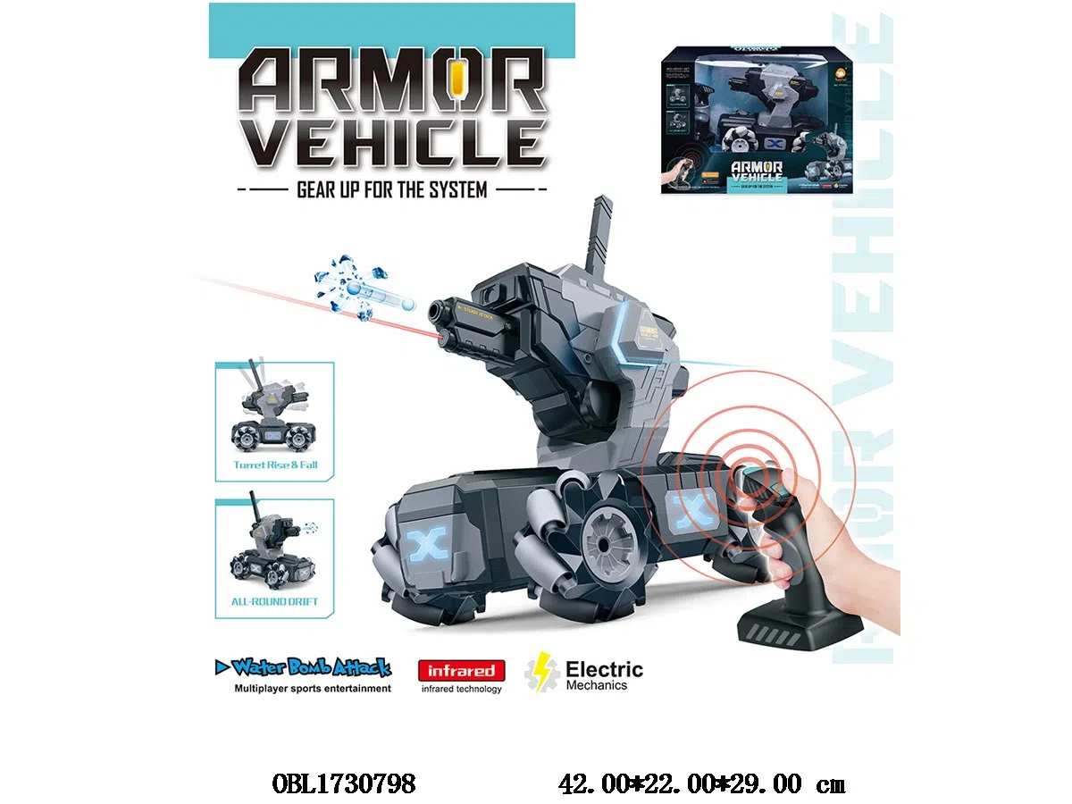 Remote control can hit tanks with bullets 3 times. After hitting the vehicle, it will be in a dead state and needs to be restarted. Equipped with a USB cable, the vehicle has a 7.4V lithium battery and a gravity sensing 5 * AA remote control without power. 2.4G frequency