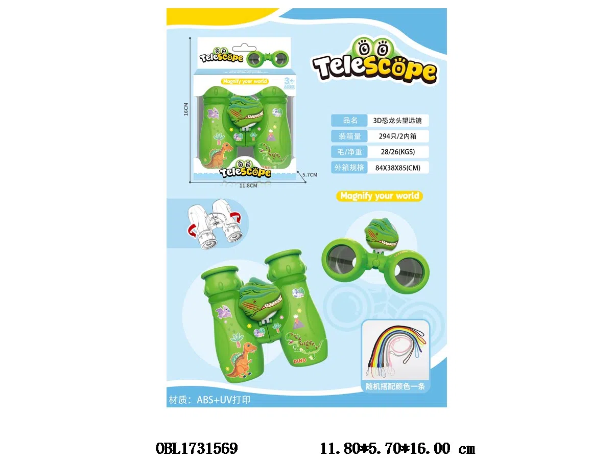 Home > Binoculars > 3D dinosaur head high-definition telescope with hanging rope, randomly matched with color, one lens made of organic glass