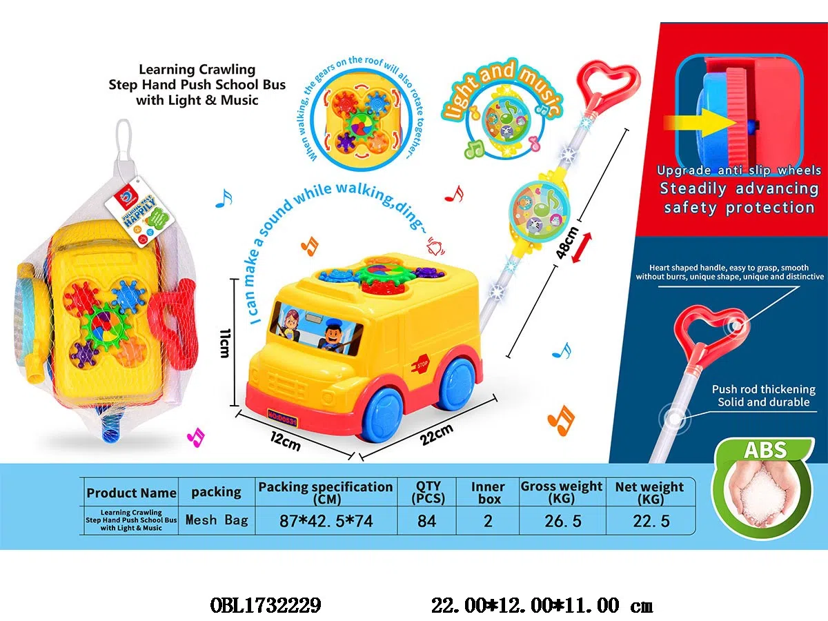 Home > Barrow Toys > Hand pushed school bus with lights, music, 3 * AAA, no electricity included