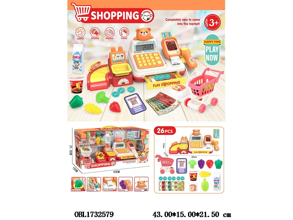 Cash register set with lighting, sound, music, calculator, analog receipt output function, volume adjustment 3 * AA, no electricity included
