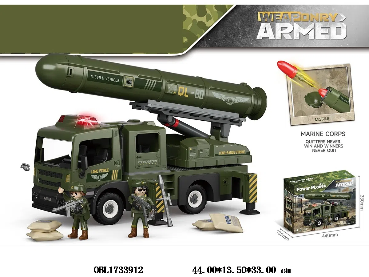 Sliding military missile vehicle with lights and music, 2 * military personnel, 2 * AAA, no electricity included