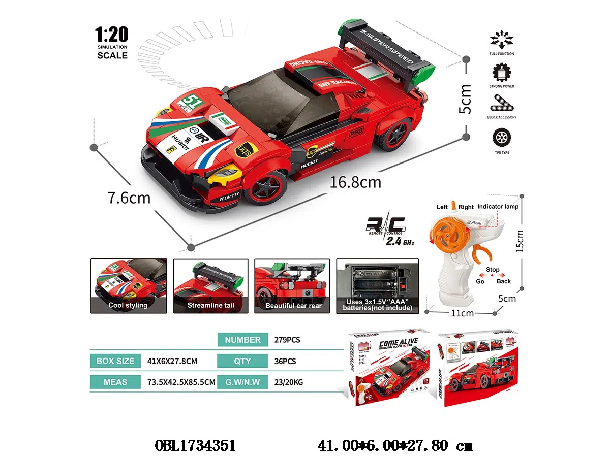 Home > Common Building Blocks > Puzzle building block remote control simulation Ferrari 279PCS body 3 * AAA without power remote control 2 * AA without power 2.4G